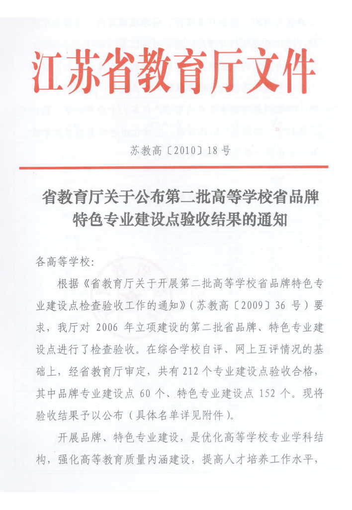 热烈祝贺高分子材料应用技术专业成为江苏省特色专业