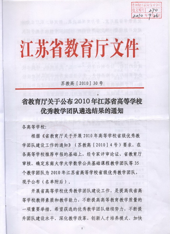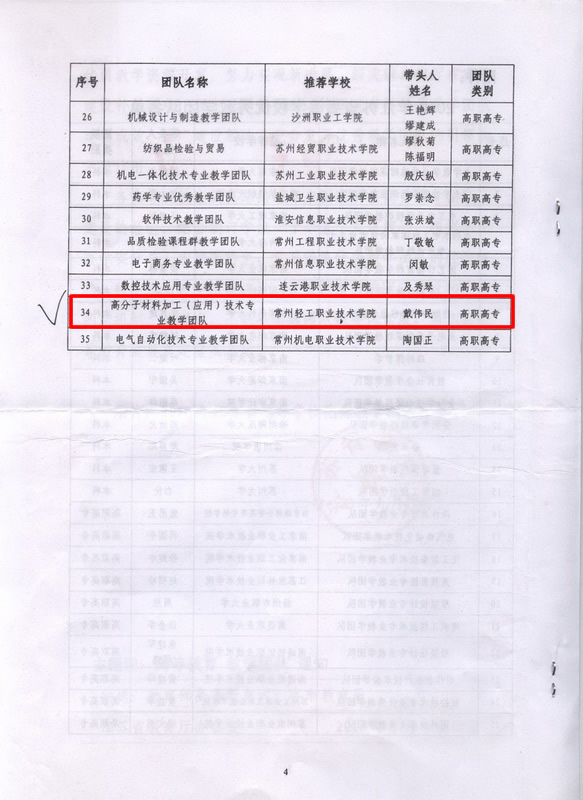 热烈祝贺高分子材料加工(应用)技术专业教学团队被评为江苏省高等公司优秀教学团队