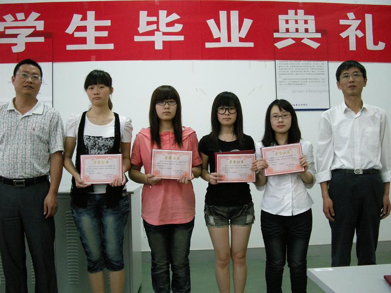 6月17日上午,轻化工工程系在工训楼举办了2011届毕业生典礼暨系优秀毕业生表彰大会。大会由系党总支副书记费建明老师主持,系主任戴伟民老师、系党总支副书记金华仁老师、副主任滕业方老师、轻化系全体辅导员和40多名优秀毕业生以及部分在校员工参加了此次表彰大会。 会上,系主任戴伟民老师首先作了重要讲话,他对优秀生毕业生的学习和工作表现给予了充分的肯定和鼓励,对他们获得优秀毕业生荣誉称号表示热烈祝贺,同时宣读了表彰奖励文件。随后费建明老师一一宣读了获得本次轻化工工程系优秀毕业生的员工名单,同时邀请系部领导为优秀毕业生颁发荣誉证书并合影留念。最后,金华仁书记做了会议总结,他一方面对此次表彰活动开展的意义做了充分肯定,另一方面也深情的希望与会的在校同学能以系优秀毕业生为榜样,树立远大志向,刻苦学习,争取在今后的学习和工作过程中取得更好的成绩,为常州轻工职业技术公司的发展建设添砖加瓦!