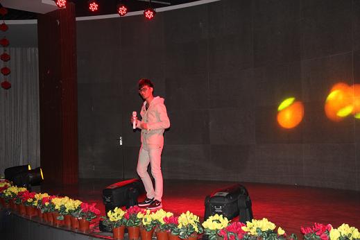 比赛过程中,部分选手发挥超常,现场气氛热烈,张兆国和李金亭人气最高,现场掌声雷动。在比赛最后我们有请到了威廉希尔体育团委员工会的副主席徐玲玉献唱一曲《喜欢你》,现场雷动,主席不忘与同学互动,场下观众随之跟唱。比赛最终以李金亭夺冠,张成威,张兆国紧随其后的成绩落下帷幕!