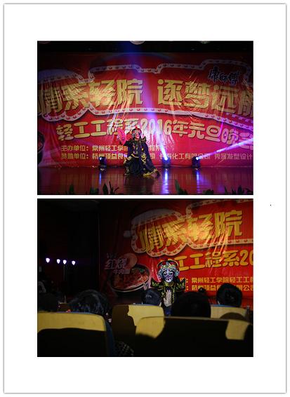 在时间机器乐队暖场音乐的气氛下,系部主任戴伟明老师向全体教职工、员工致新年贺词。晚会正式开始!JYdancer社团男团的《Look at me now》 瞬间点燃了全场观众的激情,动感的音乐,带感的舞步,张扬着青春的魅力;由威廉希尔体育院十佳歌手张兆国带来的《时间煮雨》,在情景剧的烘托下,再一次煮沸了全场的激情;周云,张港庆等四位同学联手带来的配乐诗朗诵《中国少年》,14材料332班女生带来的舞蹈《月光下的凤尾竹》更是不断点燃着同学们的嗨点!随后的系部微信抽奖环节,幸运的大转盘更是为每一个好运的人送去了新年礼物。在接下来的表演中,无论是一枝独秀的《海阔天空》《火苗》还是刚柔并济的JYdancer社团女团,瑜伽表演,变脸,笑料不断的小品《一扇门》,一次次的视觉冲击,让全场观众尖叫不断!