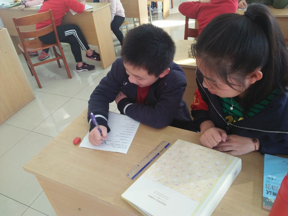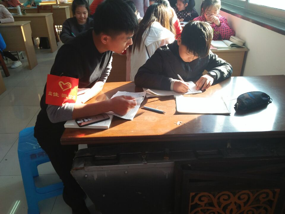 助教时间共4个小时,助教对象分别有一二三年级的6名同学、四五年级的10名同学、六年级和初一的14名同学,每人负责两位同学的学习和解疑。由于一至五年级的作业较少,大多数同学完成的较快,为了不影响六年级、初一的同学,我们陪着做完作业的小朋友在另一个房间做游戏,其中有数字抱团、一二三木头人、老鹰捉小鸡等,获得胜利的小朋友有糖果奖励。对于六年级、初一的同学,我们先给他们时间完成作业,然后留时间对他们不懂的问题一一解疑,最后检查他们完成的作业,指出错的地方,让他们重新改正。