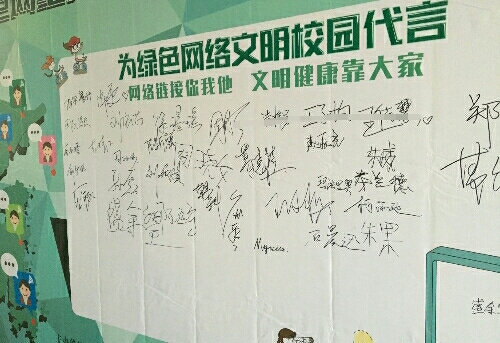 活动开始,同学们结队来到活动现场,在志愿者的讲解和引导下,在“网络链接你我他 健康文明靠大家”的宣誓条幅上认真的签上了自己的名字。活动中,我系精细化工专业的一名同学感慨的说:“今天这个活动非常好,在自己买电脑之前一定要考虑如何好好利用电脑。”公司教师路过时看到热烈的活动现场和签满名字的条幅后特别高兴,对本次活动予以了肯定和表扬,拿起笔在条幅上签下了自己的名字,决心和同学们一起创造一个文明的网络时代。