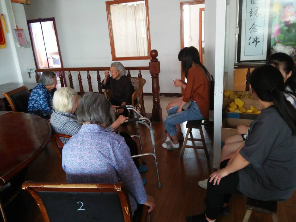 大约在7:50的时候,志愿者们到达老年公寓。在这里陪爷爷奶奶们聊天,听他们讲讲家常,聊聊小孙子、孙女;给奶奶们捏捏肩、揉揉腿,给老人们多一点关怀。直至中午11点,到了爷爷奶奶们吃饭的时间,意味着此次活动即将结束,志愿者们和爷爷奶奶们一一道别后,便坐车离开。