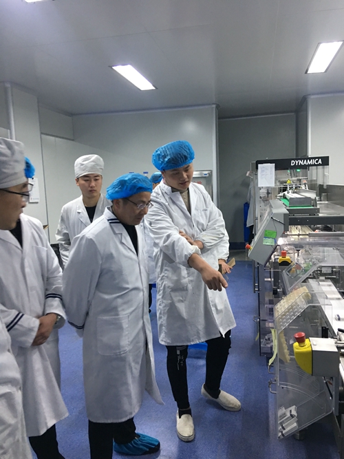 姜爱臣带领滕业方一行参观了公司固体制剂生产车间,介绍了富马酸卢帕他定片、厄贝沙坦等主要产品的生产工艺流程;双方在药品制备、分析检测、人才培养等方面进行了交流,着重探讨了如何开展订单培养、共建实习与就业基地、团队互聘等问题,并在这些方面达成合作意向。