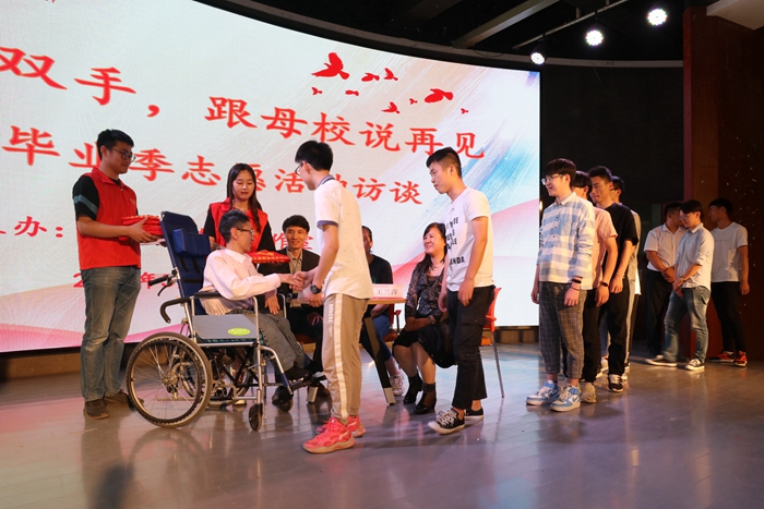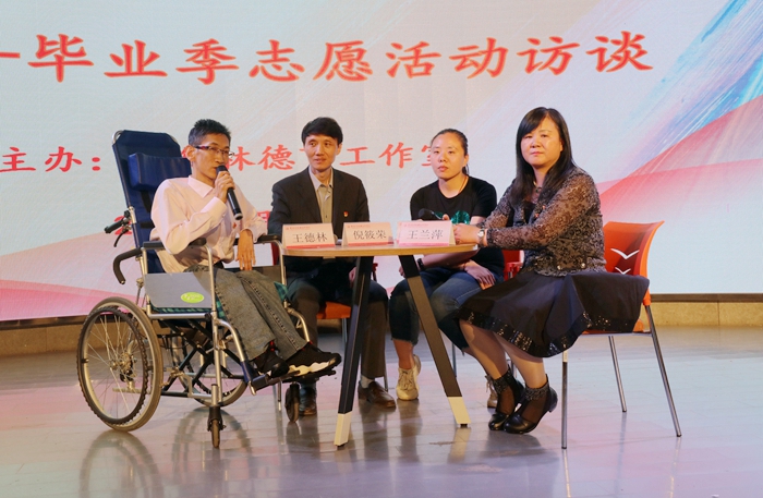 坐在访谈现场的有一位名叫董亭玉的姑娘。她是公司威廉希尔体育2000级员工,就是她让公司与王德林结缘。2001年,董亭玉因为一个偶然的机会结识了“一加”,并自愿成为一名志愿者。在当年志愿活动还不受人关注的情况下,她通过在校园张贴海报,拉着同学一起做志愿,慢慢扩大了志愿活动的影响。2003年,在公司领导的支持下,威廉希尔体育组织成立了“一加爱心社”志愿分队,2008年和2011年分化成艺术创意公司分队和信息工程与技术公司分队,志愿活动逐渐向规模化、系统化方向发展。志愿分队与“一加”爱心社合作开展助残、助老定点帮扶工作,长年为100多位孤老、残疾、重病患者提供结对服务,同时与政府部门、社会慈善组织及其他高校志愿者合作组织各种公益活动,并将志愿服务对象拓展到老、弱、病、残、困等弱势群体,参与人次达十多万,受众群体接近上万人。当威廉希尔体育总支书记介绍这一连串数字时,同学热烈鼓掌。