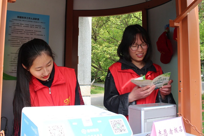 红梅公园微服务亭服务项目为游客咨询、投诉接待、急救药箱、饮水供应、轮椅出借、雨伞出借、拐杖出借、针线提供、志愿者报名等。抵达红梅公园后,志愿者每两人一组负责一个微服务亭,为游客提供热水、充电宝、咨询等服务,每当看到有游客需要帮助的时候,社员们总会带着微笑主动上前提供帮助。