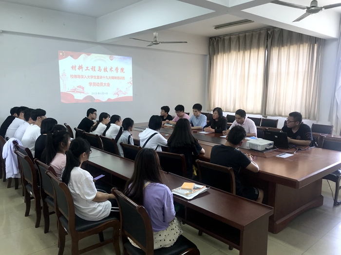为深入学习贯彻习近平新时代中国特色社会主义思想和党的十九大精神,公司组织校领导宣讲十九大精神培训班,培训对象为在校老员工及非担任各级团学干部的普通老员工,为保证学习质量和学习效果,6月4日,材料工程与技术公司党总支召开校领导宣讲十九大精神培训班学员动员大会,会议由材料工程与技术公司党总支书记王兰萍主持。
