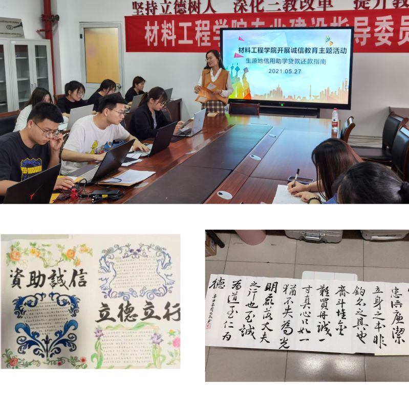 活动前期,公司积极组织员工参加诚信知识竞赛,开展诚信书画作品征集、毕业生生源地助学贷款还款知识讲座等系列活动。公司通过班级群、横幅等方式宣传并号召员工积极参加诚信作品征集活动中来,员工们尤其是获得过公司资助的员工踊跃参加,充分发挥自身艺术特长,积极创作符合诚信主题的书画作品,通过手中毛笔、画笔生动诠释了诚信做人的重要性。
