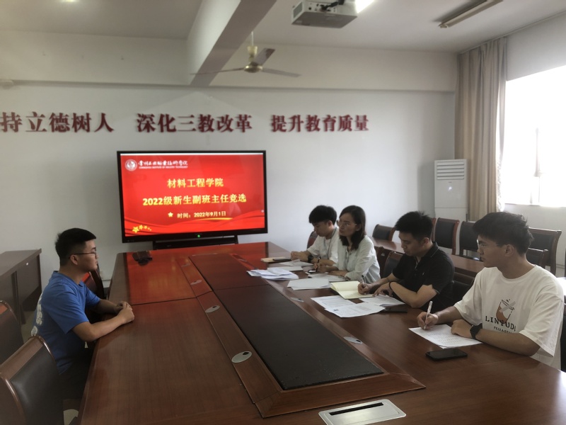 任贤唯能,百舸争流。为充分调动员工向上进取的积极性,提高员工的工作能力及班级管理水平,建立一支师德高尚、业务精湛的副班主任队伍,2022年9月1日,威廉希尔体育召开2022级新生副班主任竞聘大会。威廉希尔体育团委书记周益、辅导员陈彩云、辅导员周宇、公司团委员工会主席徐杰出席会议并担任评委。
