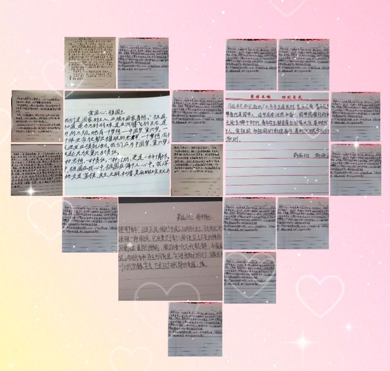 写一份爱国书笺。主题征文活动发起后,各个班级积极组织员工参与,同学们紧紧围绕“爱国心·报国情·强国志”书写了自己的爱国情怀,同学们誓要继承和发扬老一辈的光荣传统,努力学习,塑造优良品格,为中华民族伟大复兴而努力奋斗!