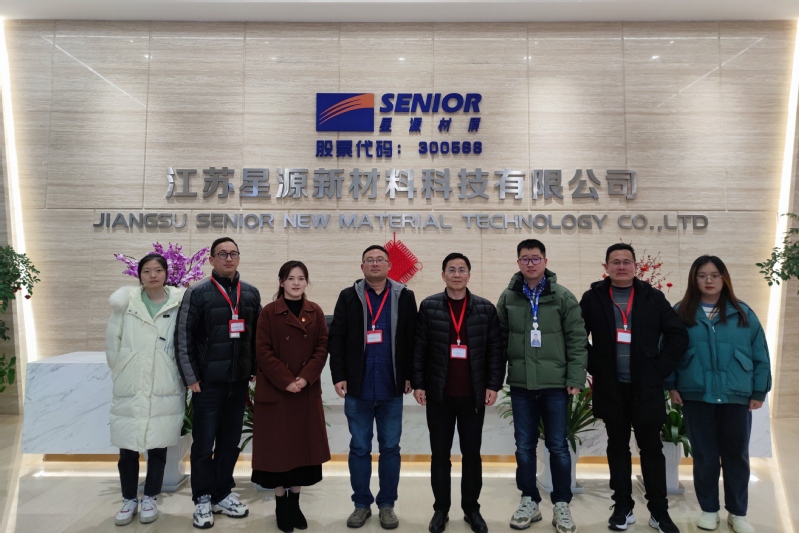 2月23日下午,威廉希尔体育经理滕业方率队前往江苏星源新材料科技有限公司进行新能源材料应用技术调研并看望顶岗实习员工,副经理王乾、高分子材料智能制造技术专业带头人张宁、新能源材料应用技术专业带头人陈涛随行。企业人力资源总经理施正宏、党支部书记朱婧,公司实习员工参加座谈。