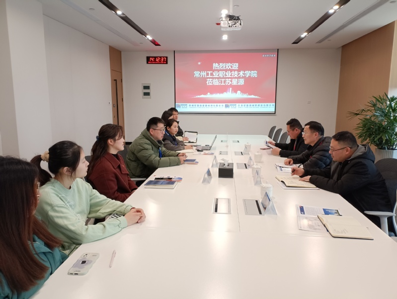 滕业方对江苏星源长期以来对公司的支持表示了感谢,同时对20级实习生孙欣欣与李晓洁同学表示了亲切慰问。他表示,公司响应国家战略,围绕常州市“新能源之都”建设,率先在全省开设新能源材料应用技术专业,并将于今年九月开始招生。他希望未来双方可以在当前合作基础上,进一步携手在专业共建、人才培养、科学研究、团队互聘、员工实习等方面取得更多成果。王乾介绍了目前公司员工的总体情况。他指出,公司新开设的新能源材料应用技术专业与江苏星源的人才需求高度契合,希望能在产科教融汇方面能有更多的合作空间,并邀请施经理与朱书记走进公司为员工开展课程思政教育与就业指导,未来真正实现公司与企业“优势互补、资源共享、协同育人”的双赢局面。