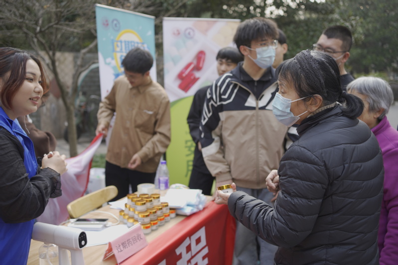 活动一开始就吸引了众多居民前来咨询。药品专业志愿者们从安全用药常识、用药禁忌、过期药危害、流感与普通感冒区别和滥用药的危害等方面向居民们科普合理用药的知识。针对居民的各种疑问,志愿者们用通俗易懂的语言,耐心、认真地答疑解惑。为了提高活动参与度,志愿者们还特别准备了自制护手霜作为小礼品,赠送给参与此次活动的居民们。志愿者们帮居民清理家庭小药箱、回收过期药品,提醒居民们过期药品不宜随意丢弃,否则会对环境造成污染,更不能随意兜售给不法商贩,否则会成为假冒药品的来源。