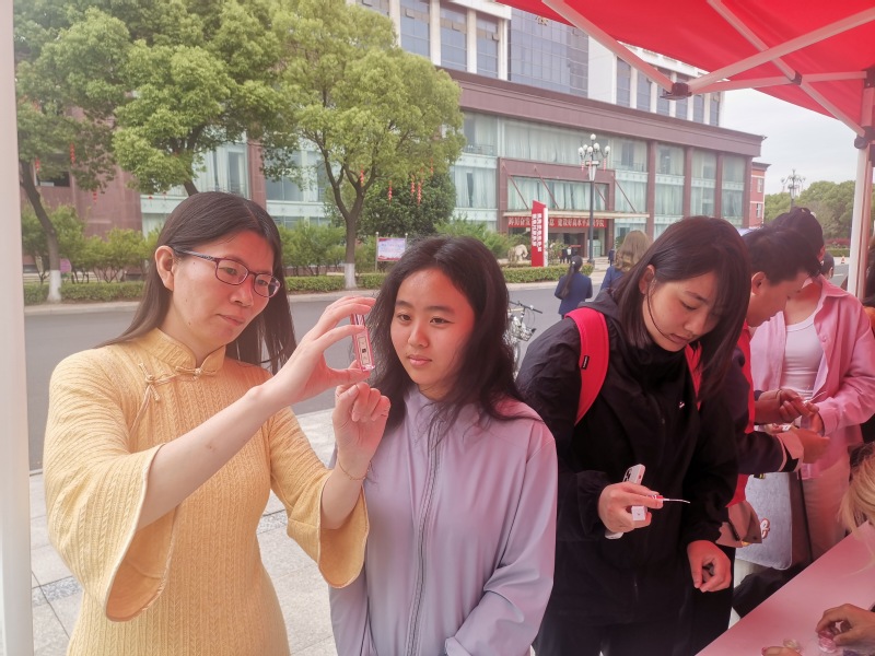 活动现场,化妆品专业老师马洪霞向大家介绍了香水文化、各种香型的特点,以及香水的正确使用方法。为了满足香水爱好者们可以体验制作香水的活动过程,马老师将过程分解和简化,让大家能体验自己动手调香的乐趣。同学们根据自己的喜好选择香型进行复配与试香,制作出属于自己的独特礼物。