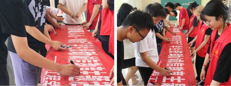 活动伊始,参与活动的同学们陆续来到集合点,大家聚集在签名横幅四周,拿上工作人员准备好的签字笔,在横幅上认真签上自己的名字。活动现场,员工资助宣讲员对来往的同学开展诚信知识的科普宣传,详细讲解了关于国家助学金、国家励志奖学金以及国家助学贷款等国家资助政策,帮助大家进一步了解国家员工资助政策。活动最后,参与活动的同学们纷纷表示诚信是立身之本,在今后的学习、生活中要牢固树立诚信意识,诚信考试、诚信待人。
