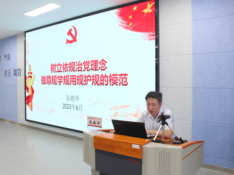 朱晓华结合主题教育相关要求,以《树立依规治党理念做尊规学规用规护规的模范》为题,围绕认识党内法规、介绍党内法规内容、实施好党内法规三方面展开宣讲,通过详细讲述“党内法规”概念的历史演变、党内规章制度的形成原因、把握“党内法规”的概念、介绍党内法规的功能等内容为大家呈现了一堂内容详实、深入浅出的专题党课。