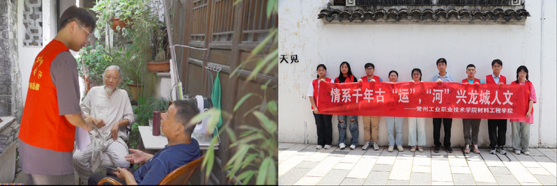 为深入了解南市河河道水质提升工程对青果巷居民的生活幸福指数的作用,团队设计了调查问卷,进行现场采访。采访者指出目前青果巷空气变好了,再也闻不到恶臭味了,水体变得清澈,河道中的生物也变多了许多,附近居民的心情都好了很多。同时,队员们也通过横幅“情系千年古运,河兴龙城人文”宣传引起游客的注意,向公众传达重要的社会问题和公益事业,从而提高公众的关注和意识,通过横幅上的简洁清晰的文字和图片,可以快速有效地传达公益信息,让更多人了解到相关问题,并激发社会共鸣。