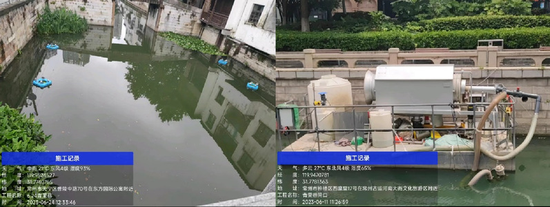 实践团队查找的网络资料显示,《常州市水生态环境保护条例》正式实施以来,通过“一河一策”管理办法,引入民间河长、义务护河员等社会力量,对南市河进行共治共管。队员们通过走访现场,观察到南市河现场最大限度的保留了南市河周边的原始风貌,河底两旁筑起了一排生态桩,并种植上了用于净化水质的绿植,同时河道中布设有增氧曝气机,漂浮物打捞船,清淤船等。在指导教师的讲解下,同学们深刻的学习了这些治理措施的工作原理和作用。