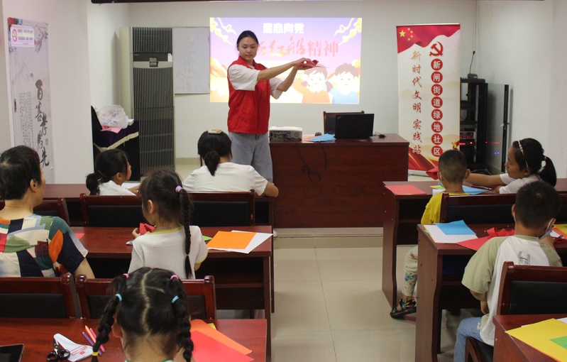 团队走进绿地社区,志愿者为小朋友们讲解了“红船精神”的发展由来、具体内涵和历史价值,并带领大家一起制作红船折纸,让“红船精神”和红船文化扎根青少年心中,让红色基因在孩子们心中落地生根。团队充分借助老员工的专业知识和技能,将课堂搬进社区和乡村,让青年与基层“双向奔赴”。