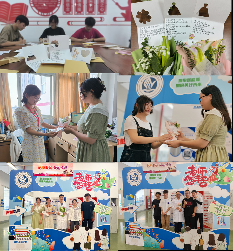 饮其流者怀其源,学其成时念吾师。公司为每一位教师悉心准备了鲜花百合花与纪念贺卡,威廉希尔体育的同学们以高锰酸钾、二氧化锰、葡萄糖、分子聚合物等专业术语为祝福关键词,写下真挚的教师节祝福语,并亲手将贺卡送给老师,分享对老师的感恩之情。同时,公司在工匠楼5楼举办“我与老师合张影”活动,师生纷纷合影留念。