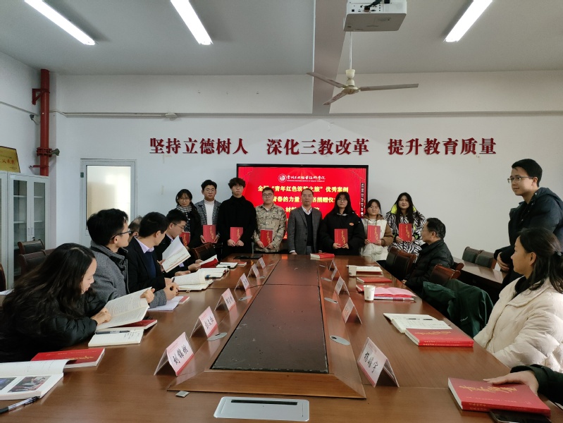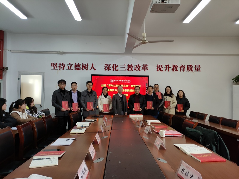 滕业方代表公司全体师生向徐德锋慷慨捐赠全国“青年红色筑梦之旅”优秀案例《青春的力量》,共计500册,表示崇高敬意和真挚感谢。他指出,为了进一步推动高校创新创业教育健康发展,把中国“互联网+”老员工创新创业大赛“青年红色筑梦之旅”活动作为全面推进高校思政工作的重要抓手,引领高校人才培养范式改革,培养员工敢闯会创的能力,不断提高高校立德树人成效。他希望公司师生能够认真阅读,参考借鉴,汲取创新创业的成功经验和启示,切实加强和提高师生的创新创业的意识和能力,扎实推进公司双创教育工作。