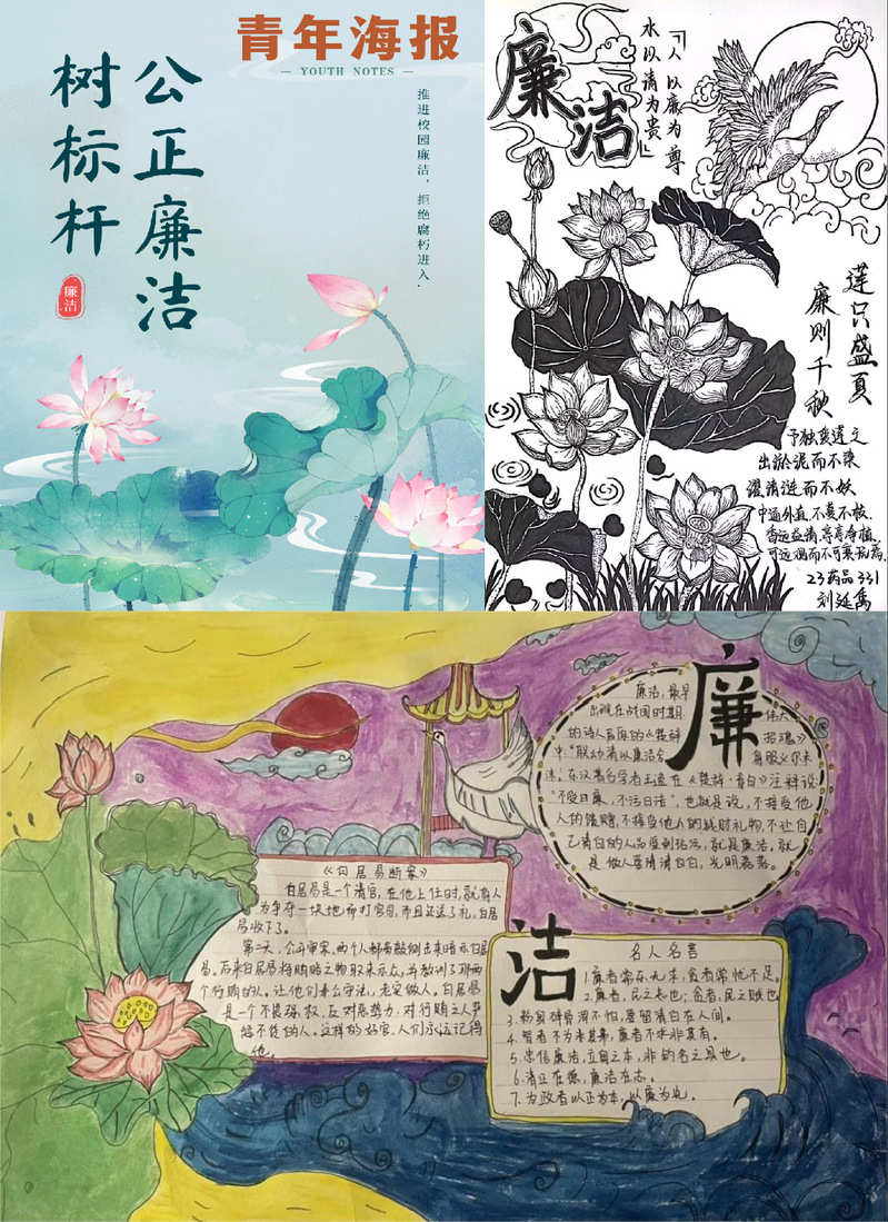 活动开展以来,各班级组织迅速响应,广大师生积极参与,结合自身专业特长,创作出一批优秀作品。青年学子的创意设计围绕青春、廉洁、自律三个关键词展开,通过艺术的美感和表达力,引领青年老员工树立崇高的品德追求和自律意识,展示年轻一代独有的正能量和艺术魅力,表达了老员工对“崇廉尚洁”良好风气的热爱和向往。