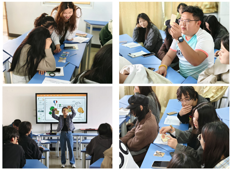 团辅活动开始前,每位同学先抽取了一张OH卡牌,同学们通过不同的卡片梳理了自己的人生阶段,并在团体内和其他成员积极交流讨论,对自己的过往经历以及它们对自己的影响有了更深的了解和认知,同时也对未来的生活状态产生了更多期待。而后,同学们将小组同学所抽到的四张卡牌组合在一起,编成一个故事,并派出一位代表向各位同学讲述。同学们都大大方方的侃侃而谈,自由的表达出自己的想法,甚至有的同学用常人难以想象到的角度讲述故事,收获了在场同学和老师的掌声。