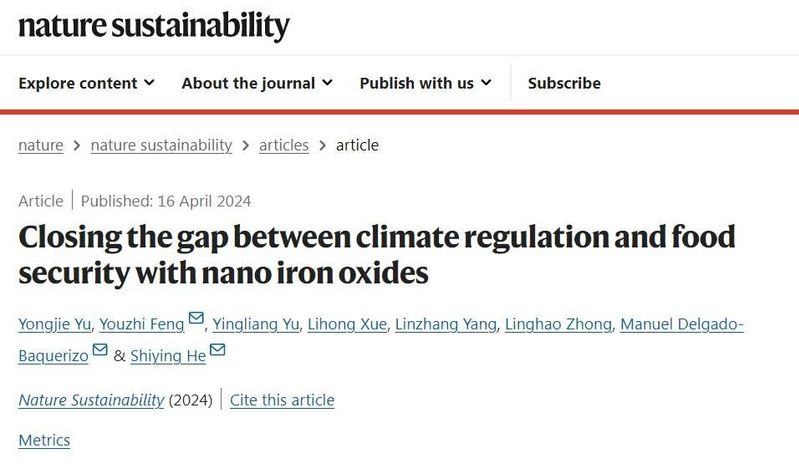 这一里程碑式的研究成果标志着公司在科研领域的巨大突破,展现了国际合作的深厚实力和卓越水平。《Nature Sustainability》作为备受尊敬的学术期刊,近两年影响因子在27.65,其权威性和影响力不言而喻,为该研究成果的发表增添了更多光彩。