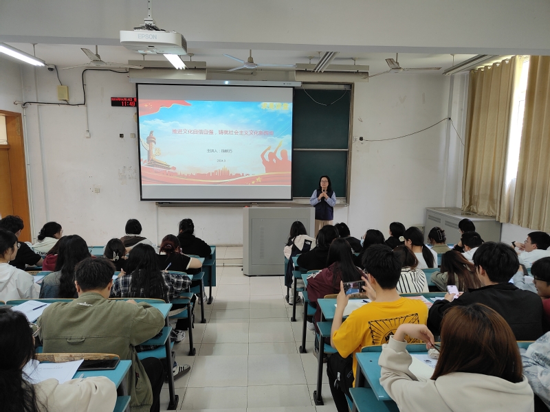 首先在文化自信自强是精神力量之源内容方面,徐新巧结合党的二十大报告,重点从文化自信自强的生成逻辑以及文化自信的科学内涵与内在逻辑两点展开详述,站在中国近百年的历史进程角度,引用梁启超先生的《五十年中国进化论》中的探索救亡求存之路历程,细致地为我们讲解了文化自信自强生成的历史逻辑。同时在讲到文化自信的科学内涵与内在逻辑内容时,以重要的时间脉络主线形式分析文化自卑、文化自觉、文化自信到文化自强的内在逻辑,并对中华优秀传统文化中的精神追求、精神特质、精神脉络进行详细地阐述。其次在铸就社会主义文化新辉煌内容中,以举旗帜、聚民心、育新人、兴文化为关键词,从建设具有强大凝聚力和引领力的社会主义意识形态、广泛践行社会主义核心价值观、提高全社会文明程度、繁荣发展文化事业和文化产业四个举措分析,让我们深刻了解如何铸就社会主义文化新辉煌的措施。