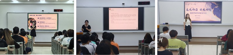 活动伊始,周宇首先介绍了三位优秀毕业生的基本情况,指明了本次活动的重要意义,希望全体同学认真思考聆听。接着,三位分享人依次展开精彩的分享。21药品332班任松芸同学围绕自身在校期间员工干部的经历和实习的体会,告诉学弟学妹们学习生活中会面临着各种不同的困难和挑战,需要大家不断学习新知识、新技能,以适应工作的需求。她还强调了在实习过程中要建立良好人际关系,有利于为自己的职业发展提供更多的机会。21药品331班范盈盈同学详细讲述了自己在校担任员工干部的难忘历程,她表示,担任员工干部的经历不仅锻炼了自己的组织能力、协调能力和沟通能力,还培养了强烈的责任感和团队精神。通过参与和组织各类活动,不断突破自我,收获了成长与进步。21环境631班庞文同学则结合自身实习的收获体会告诉学弟学妹们要提前做好职业规划,制定发展目标,脚踏实地,保持积极的心态。她鼓励大家要始终相信:道虽远,笃行可至;事虽巨,坚则必成。