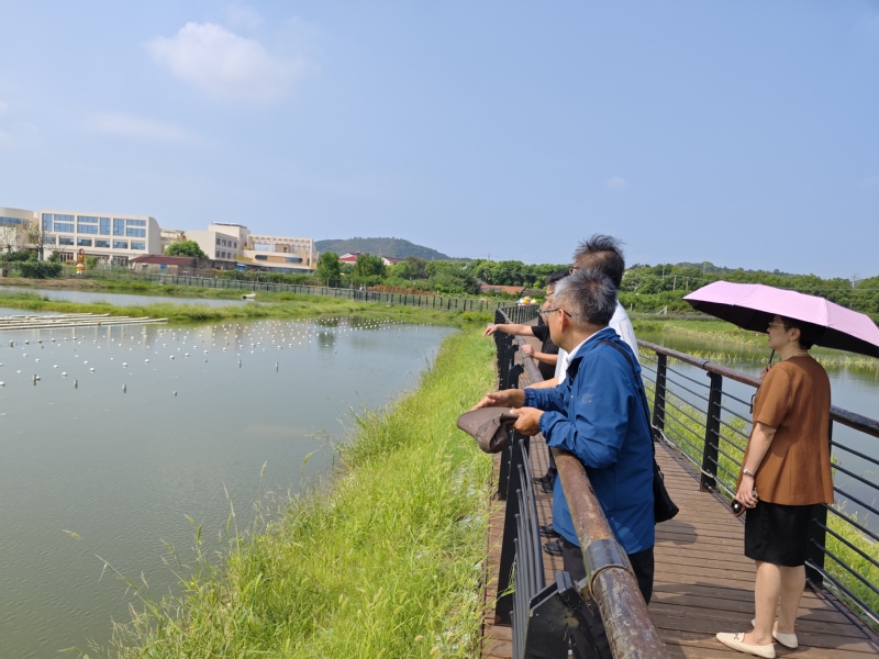赖文亮分享了他在台湾大仁科技大学的教学经历和学术研究领域,并结合台湾的职业教育现状和与会教师从员工现状、职业能力培养、教师专业教学能力及学术研究思维等方面进行了深度交流。一行人在武进区台办副主任皇甫海鸥的陪同下,前往雪堰镇雅浦港生态缓冲区生态湿地及武进区藻水分离站进行实地调研,就生态环境保护和水污染治理等前沿技术进行了深入交流。