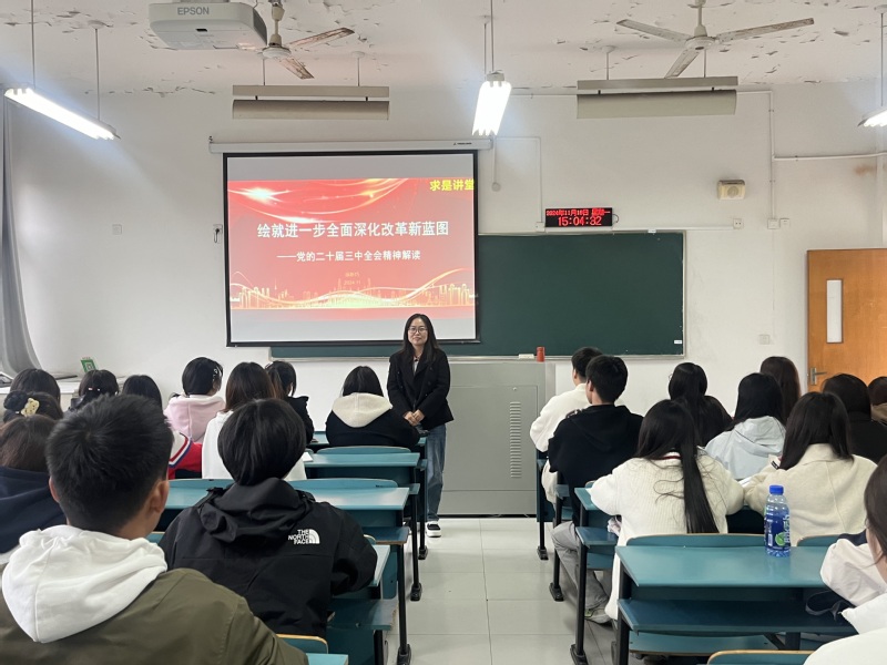 11月18日下午 公司开展“党的二十届三中全会精神解读”专题大讲堂。23级全体员工干部参加,讲堂由徐新巧主讲。