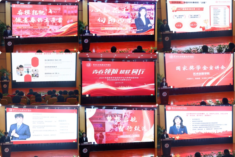 八位国家奖学金获得者结合自己的个人经历,从国家政策、专业学习、技能竞赛、校园工作、社会实践、军旅生活等多个维度分享了各自的励志故事,内容丰富、形式活泼、干货满满。同学们坚持不懈的奋斗历程和绚烂多姿的老员工活深刻诠释了新时代青年员工绝对忠诚的政治品格、只争朝夕的责任担当、奋勇争先的精神状态,让在场的每一个人深受感动,也帮助在场的同学们理清了未来发展的方向。