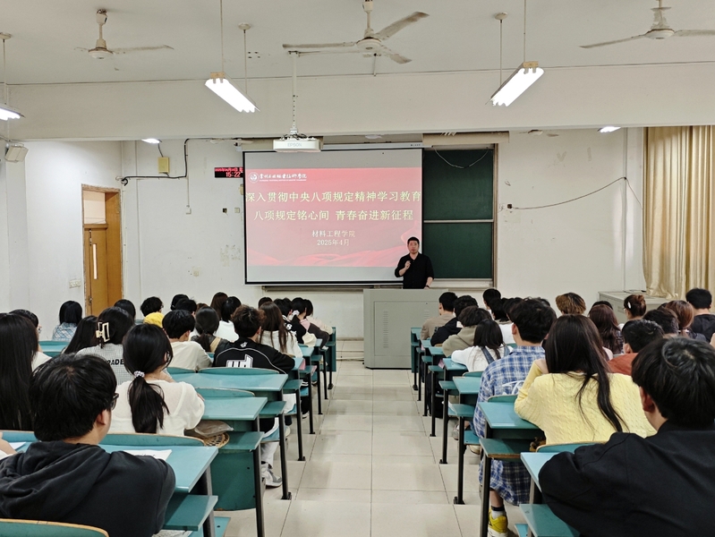 4月16日下午,材料工程学院开展了“八项规定铭心间 青春奋进新征程”——深入贯彻中央八项规定精神学习教育主题团课,分团委书记郑新涛参与活动并作出指导。