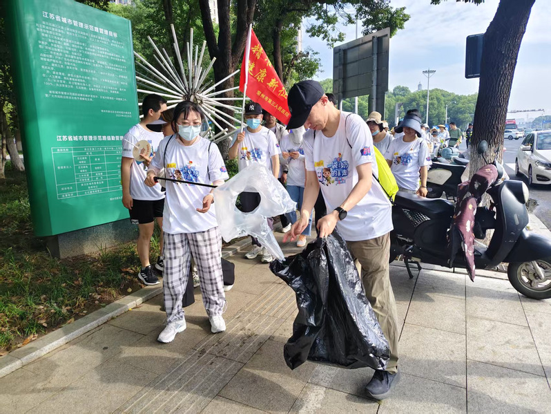 上午8点,伴着清风微凉,带着出征的兴奋,支部党员教师齐聚本次活动起点——江南环球港,组成一支士气高昂的“常工业新材人党员示范队”,大家统一身着白色体恤,胸前党员徽章熠熠生辉。随着发令枪响,队伍沿既定路线出发,暴走路线串联起东坡公园、天宁寺、青果巷等历史文化景区,党员们边走边学,在行走中感悟常州历史和城市发展的变迁。