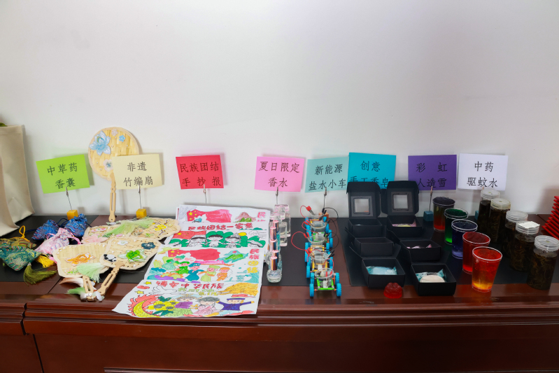 此次为期12天的青春与童心之旅,在8月1日的结业仪式上画上圆满句点。结业仪式上的“童心童艺”作品展吸引了众多村民和家长参观,展出的100余件作品包括中药香囊、非遗竹编扇、创意香皂、夏日香水、民族手抄报等,展现了孩子们丰富的想象力和创造力。