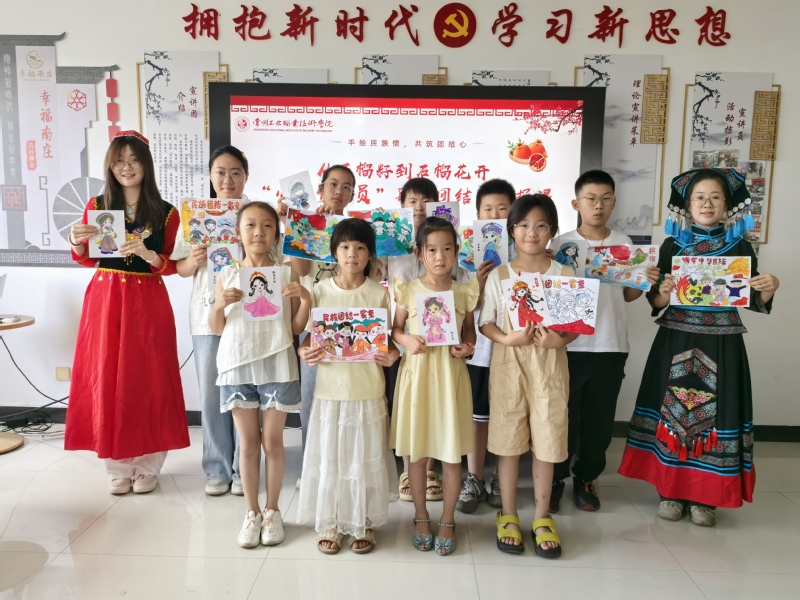 实践团紧扣立德树人根本任务,将爱国主义与民族团结教育融入课程设计。在《“小小宣讲员”民族团结手抄报》活动中,孩子们通过绘制民族团结手抄报,体验少数民族精美服饰,感受少数民族的多元文化,铸牢中华民族共同体意识。此外,志愿者还以传统文化分享会、红色手工坊等形式,引导孩子们传承红色基因。南庄村党总支副书记胡静称赞:“老员工们用孩子们听得懂的语言讲好了民族团结大道理,这样的德育课有温度、有深度。”