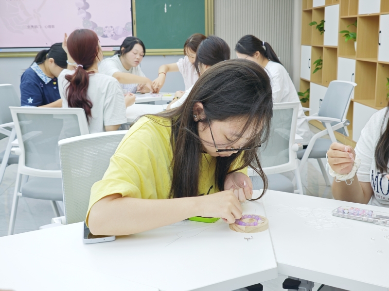 本次活动将手工艺术与心理关怀有机结合,不仅帮助新生在创作中缓解压力、激发创造力,也以珠为媒,促进了同学之间的互动与联结,为大家探索兴趣、适应新环境注入积极能量,开启精彩纷呈的大学新篇章。