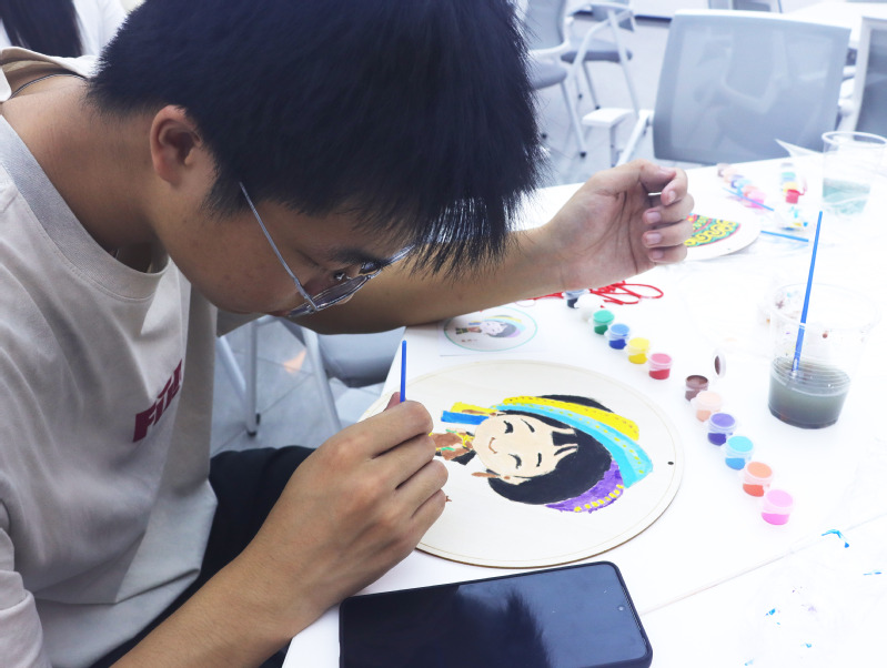 在民族风主题挂饰制作环节,同学们充分发挥创意,先在圆形木盘上精心绘制各少数民族人物画像,然后系上亲手编织的中国结,组装成独具特色的民族团结主题挂饰每个挂饰都展现一个民族的特色服饰和文化符号。此次活动十分有新意,不仅让我提升了绘画技能,更深入了解了各民族的文化特色。参加活动的土家族员工杨鑫宇在展示作品时说道。