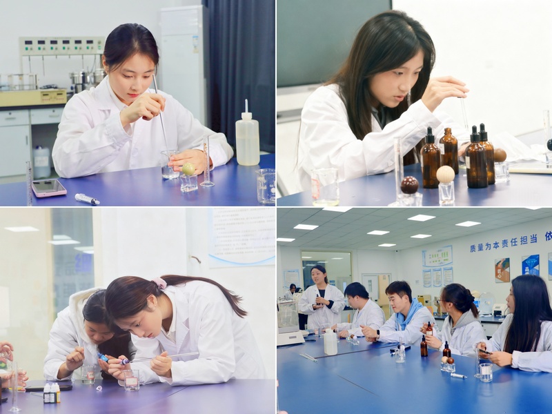 从实验室里的精油精准配比,到活动现场的创意作品呈现;从跨专业的协作探索,到校园心理疗愈的实际应用,本次活动不仅充分展现了当代老员工的创新活力与实践能力,更以色彩为媒、以香气为桥,为校园注入了温暖治愈的心理能量。参与同学纷纷表示,“宁心蓝”香水在适应周带来了安心感,“暖阳橙”香水则像“小太阳”一样驱散了负面情绪。